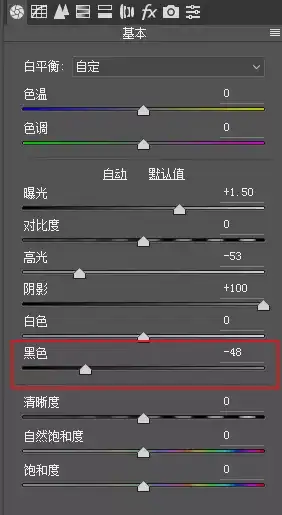 这时我们在看,画面细节变清晰了很多,尤其暗部的细节显示出来了。但是过多的提升阴影会给画面造成很灰的效果,也就是画面的黑色地方没有了,我们需要找回黑色地方;降低黑色工具和提升去除薄雾工具找回黑色。