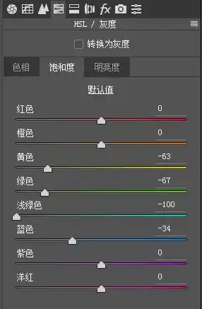 而我们在来看看颜色的饱和度上,这种日系的照片都是非常耐看的,之所以耐看是因为画面的饱和度很低,无论是天空、海面还是树叶饱和度都不是很高。所以思路3:画面主要颜色饱和度较低。除此之外,照片既然是要呈现日系绿调的感觉,那么就需要人为的给画面加入绿色,所以需要在阴影里面加入绿色。思路4:画面阴影偏绿。 3.艺术效果上:既然是仿胶片的效果,胶片独有的特点就是画面颗粒感很强,所以我们需要人为后期去给照片加入颗粒感。所以思路5:画面充满颗粒感。